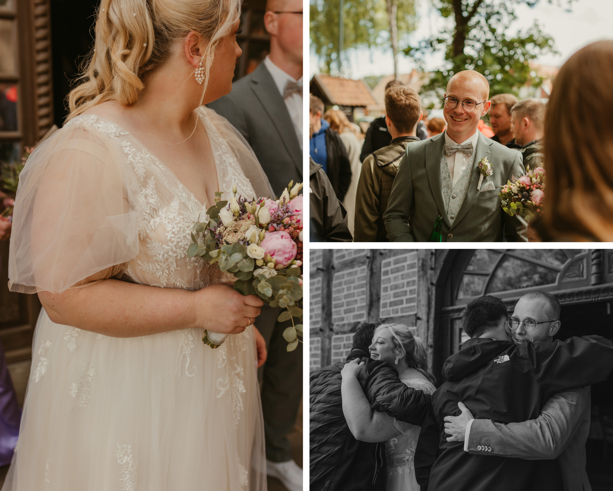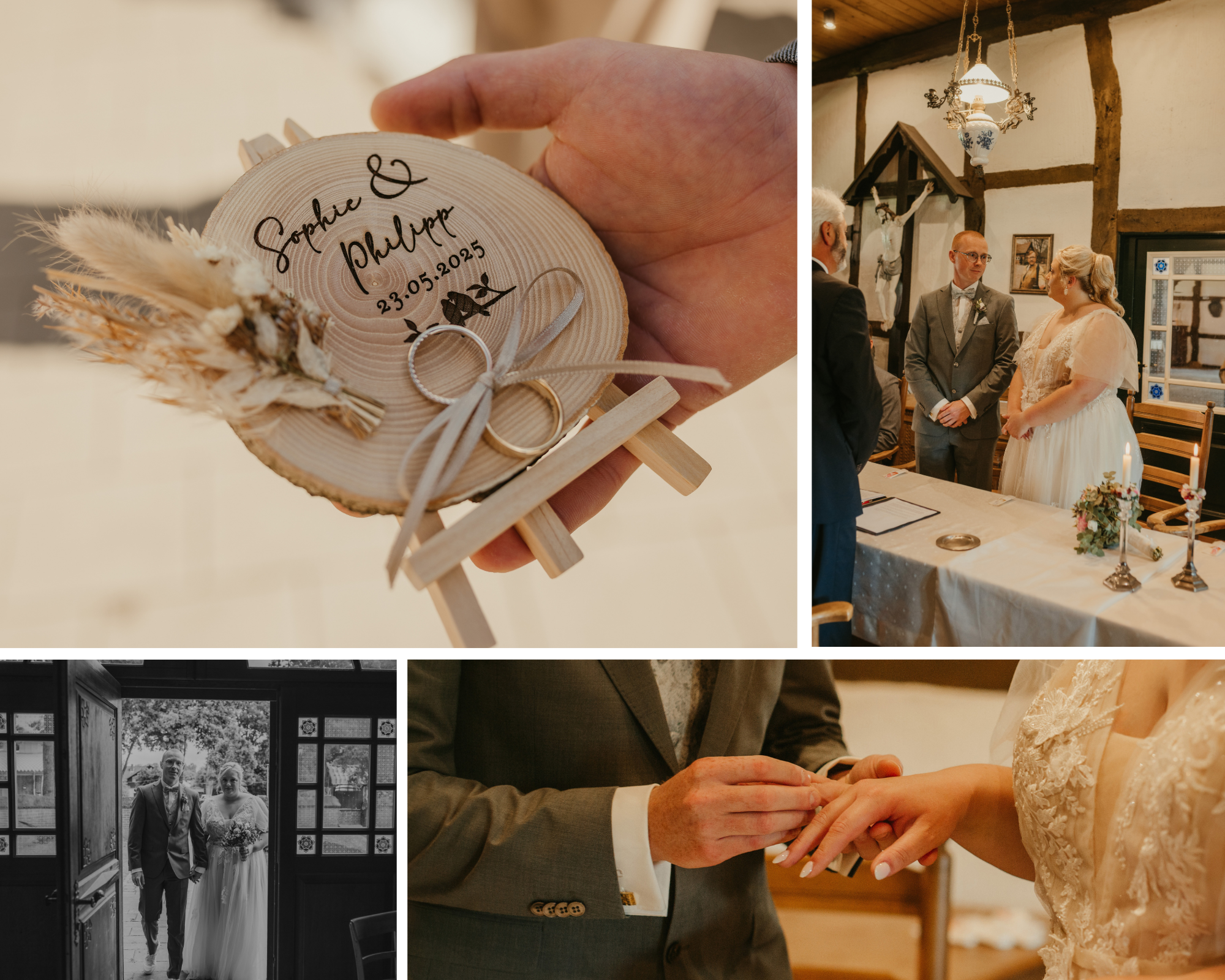 Im Anschluss an das Brautpaarshooting sind wir zu den Heimathäusern in Haselünne gefahren, wo die standesamtliche Trauung der beiden stattfand. Super hübsch fand ich auch die Ringstaffelei, die die beiden für ihre Eheringe mitgebracht hatten.