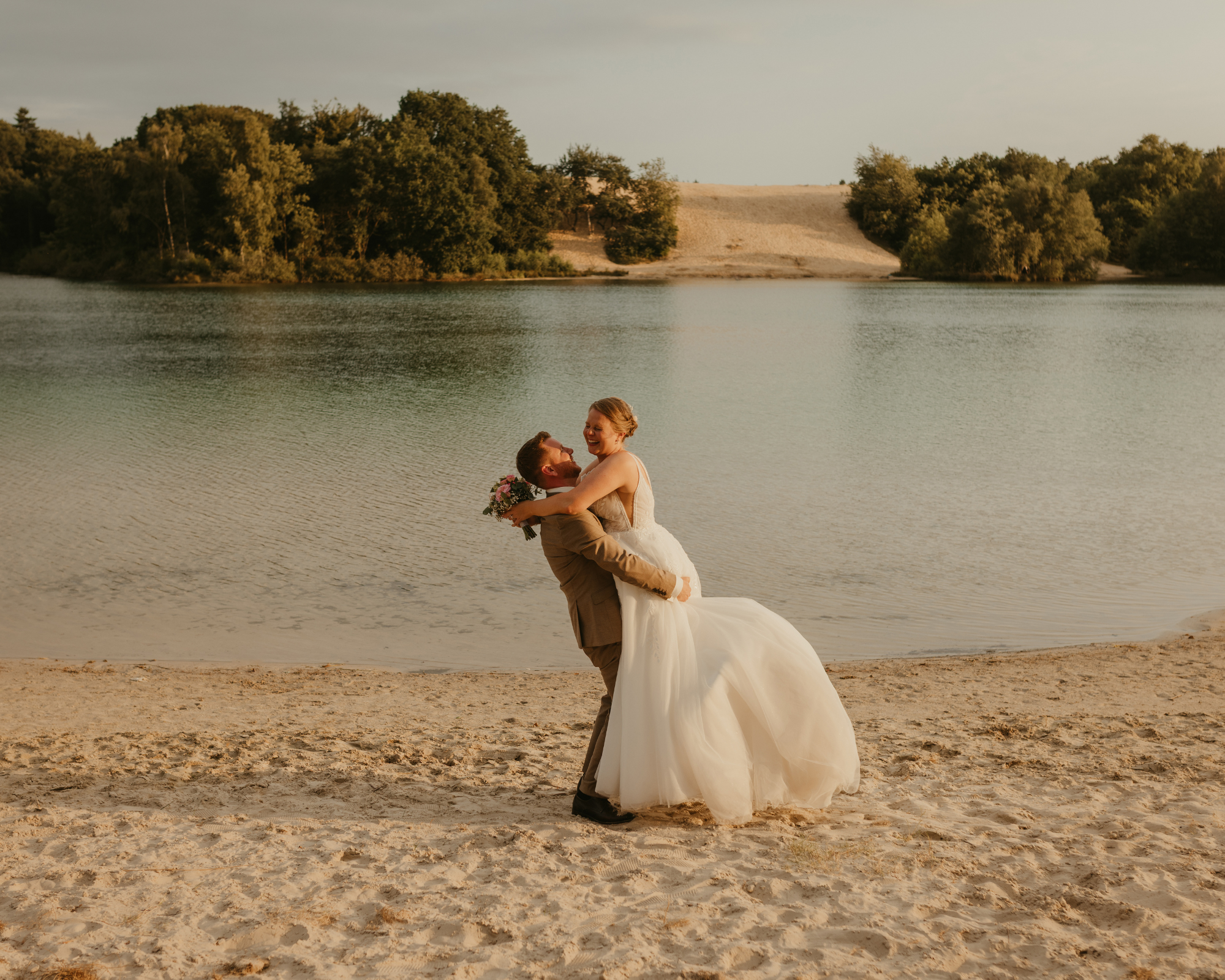 Da sie nach der standesamtlichen Trauung im Heimathaus Twist eine kleine Feier mit den engsten ihrer Liebsten bei Plünnhock in Haren gefeiert haben, und der Dankernsee sozusagen bei mir um die Decke ist, hatten wir uns noch für ein Sonnenuntergangsshooting verabredet. Dabei sind ganz zauberhafte Bilder im Gegenlicht entstanden. Ein wunderbarer Abschluss nach einem so tollen Tag! 🙂