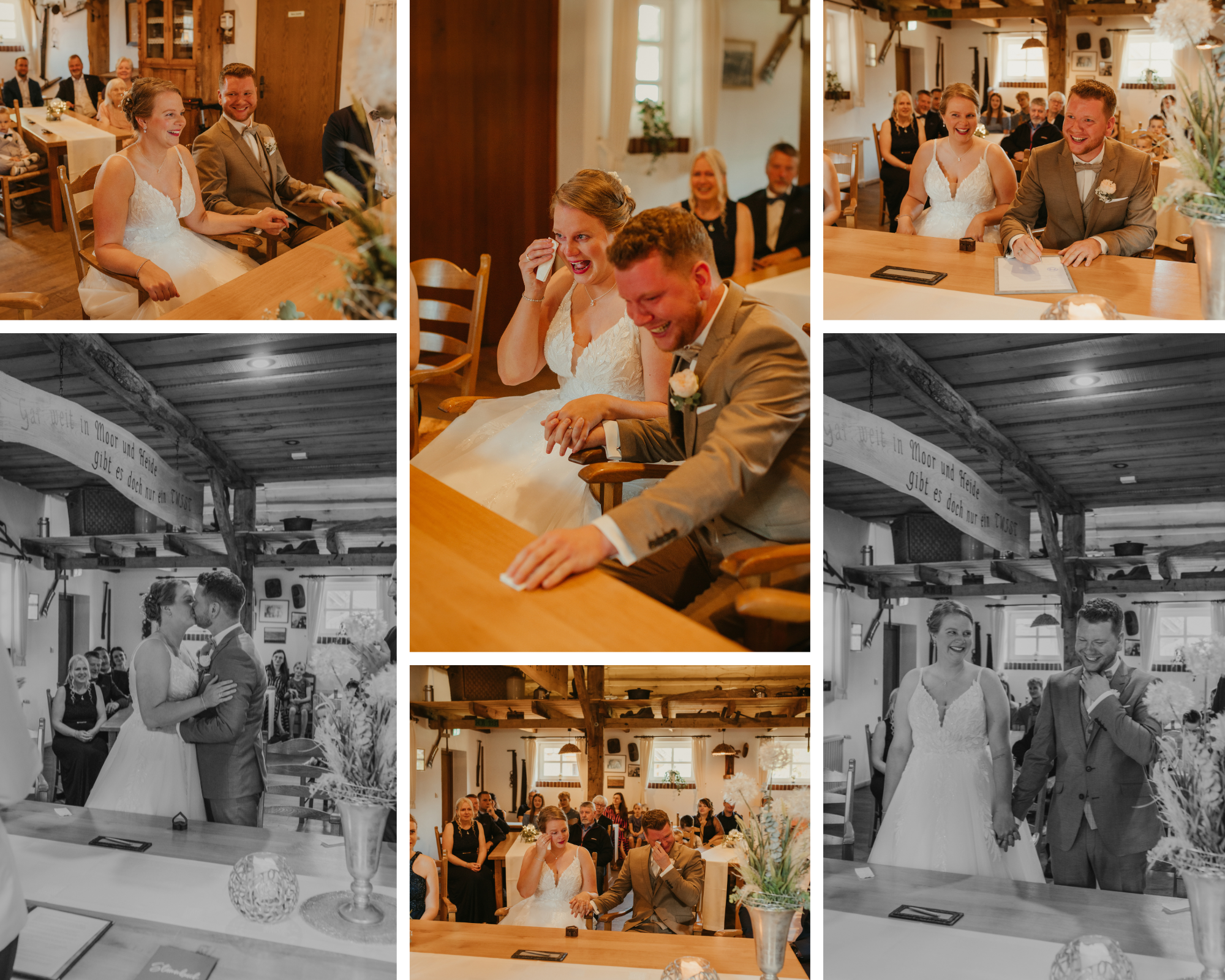 Mit Familie, Trauzeugen und Freunden konnte dann die Trauung beginnen. Die Standesbeamtin war eine Freundin der beiden, so dass die Trauung noch emotionaler und persönlicher gestaltet werden konnte. Es wurde viel gelacht und viel geweint und dabei sind viele echte Momente und Erinnerungen entstanden.
